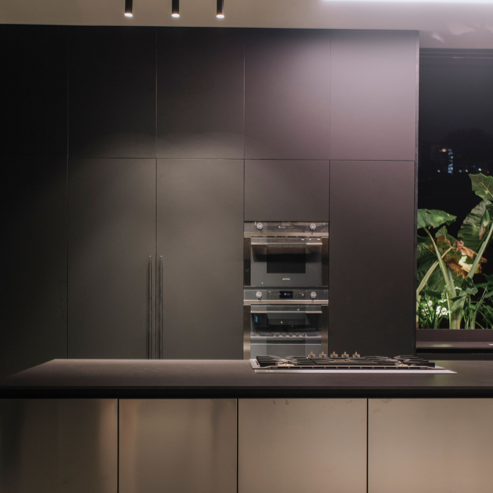 Le Neolith Nero Satin s’intègre parfaitement dans des cuisines modernes, minimalistes ou industrielles, en apportant une touche élégante et sophistiquée grâce à son noir profond et sa finition satinée mate qui crée des contrastes raffinés avec le bois, le métal ou le marbre clair.