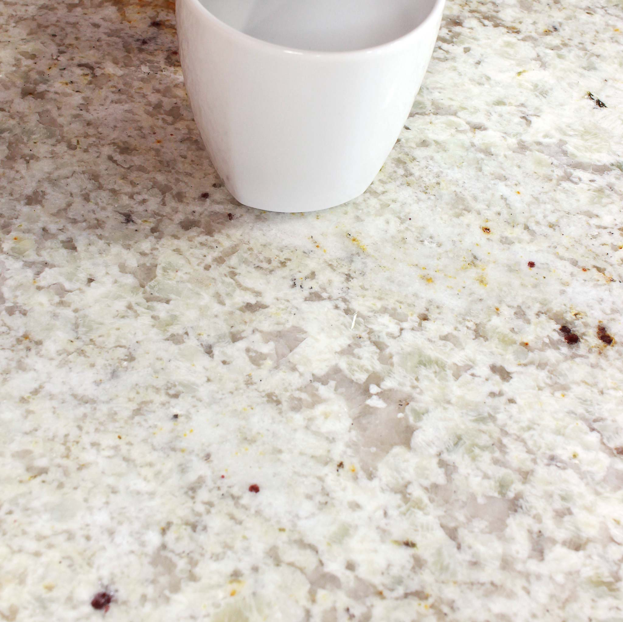 Ce qui caractérise particulièrement le granit Colonial Cream, c'est sa surface polie et sa couleur crème, avec des touches dorées et rouilles, il apportera de la chaleur et de l'élégance à votre cuisine.