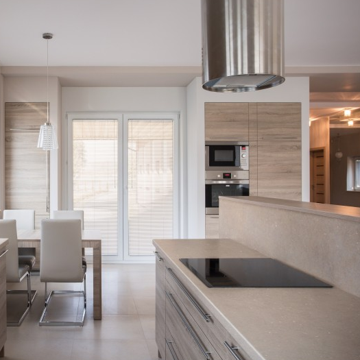 Le plan de travail en quartz est parfaitement adapté à l'environnement culinaire. En effet, sa porosité nulle rend le quartz très résistant aux taches, et sa texture empêche les bactéries de se développer. Silestone résiste à une montée en température jusqu'à 180°. Nous recommandons l'utilisation d'un dessous de plat afin d'éviter tous risques de décoloration de la surface due aux chocs thermiques. Il faut également faire attention aux micro-rayures.